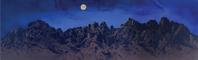 또 둥근 달이 뜬 밤하늘 아래 웅장한 울산바위, 흰 눈 쌓인 내린천, 속초 장사항, 고성 아야진, 정박한 배와 우두커니 서 있는 등대 등 그가 몸담아 온 강원의 자연이 캔버스로 들어왔다.