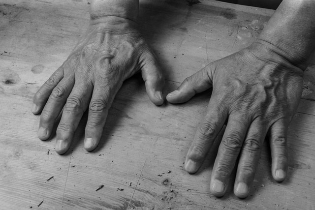 Between the rough and hard fingers are traces of the time, concentration, and hard training he has endured.